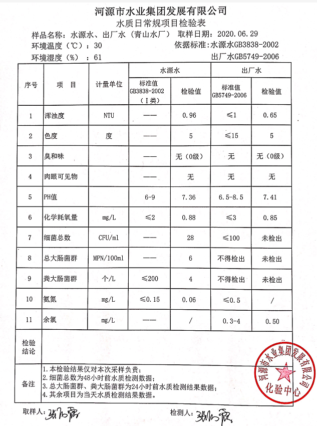 2020年6月29日水質(zhì)檢驗(yàn)報(bào)告