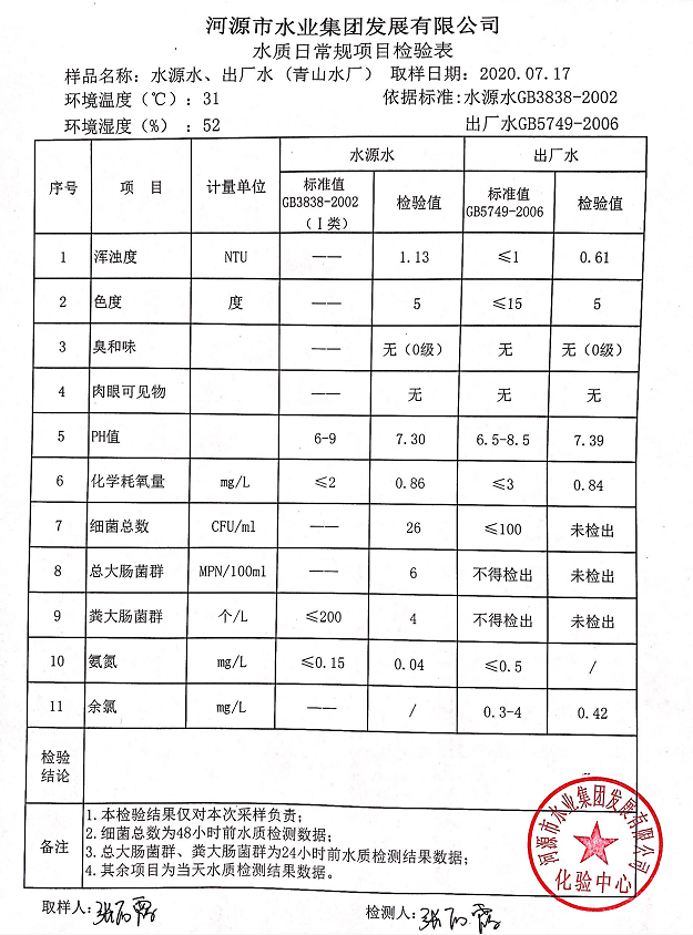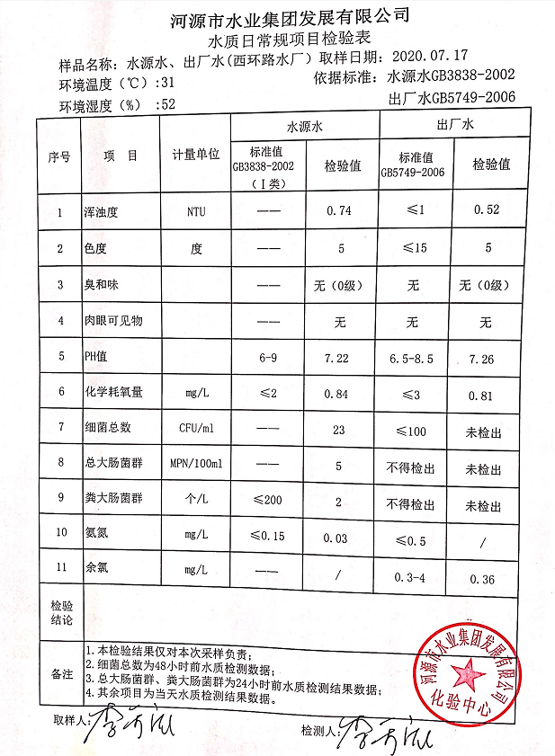 2020年7月17日水質(zhì)檢驗(yàn)報(bào)告