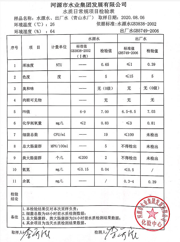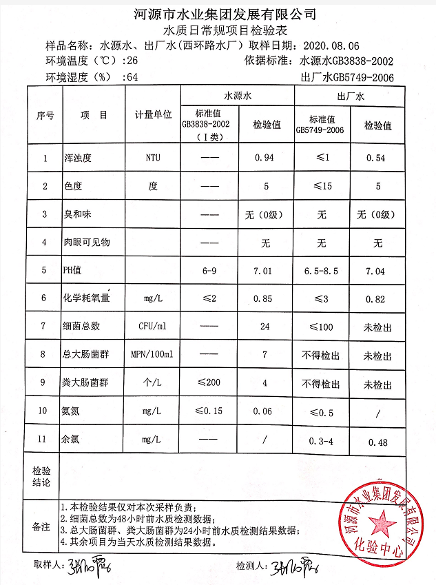 2020年8月6日水質(zhì)檢驗(yàn)報(bào)告