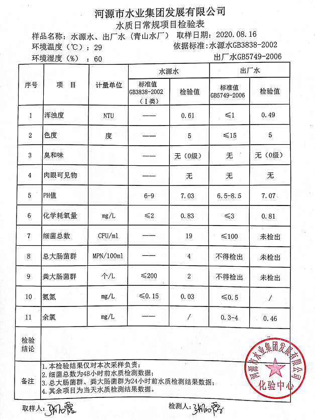2020年8月16日水質(zhì)檢驗(yàn)報(bào)告