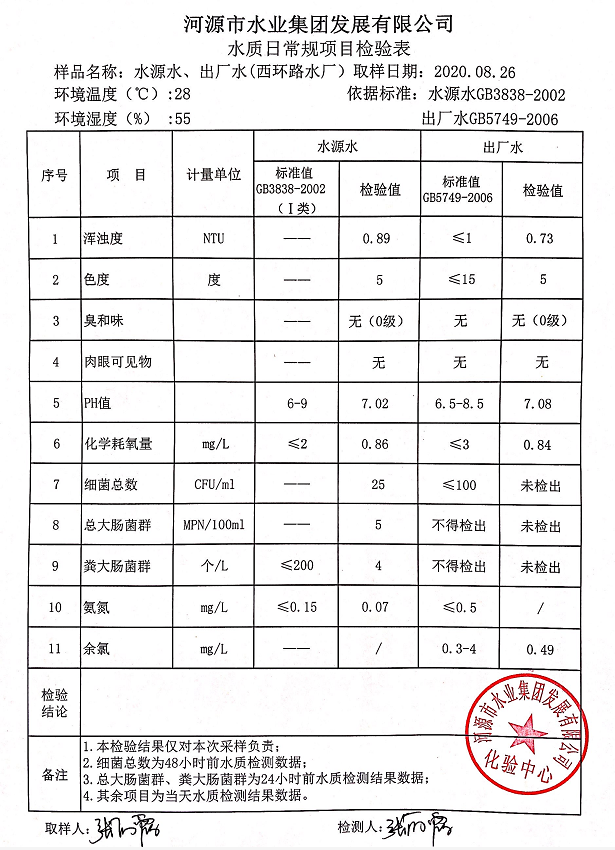 2020年8月26日水質(zhì)檢驗(yàn)報(bào)告