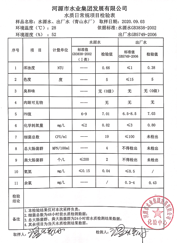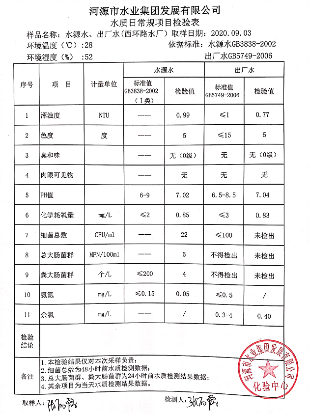 2020年9月3日水質(zhì)檢驗(yàn)報(bào)告