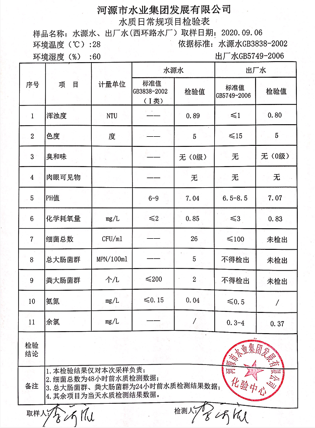 2020年9月6日水質(zhì)檢驗(yàn)報(bào)告
