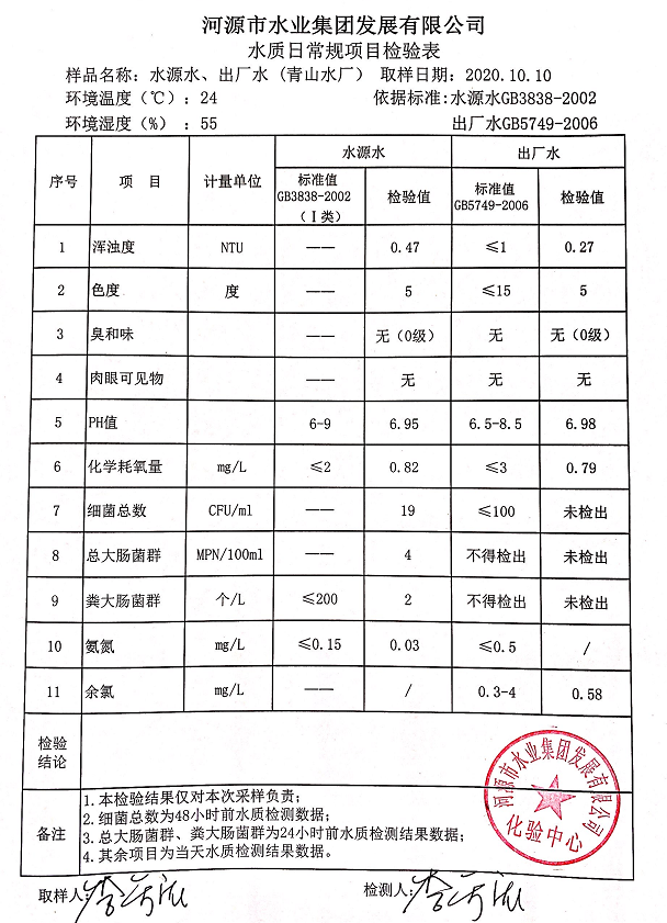 2020年10月10日水質(zhì)檢驗(yàn)報(bào)告