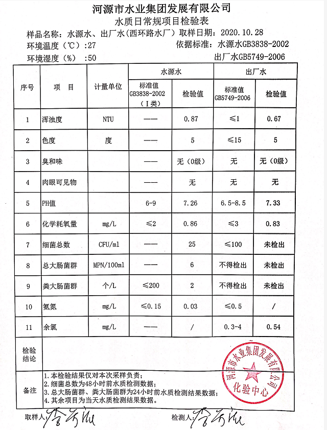 2020年10月28日水質(zhì)檢驗(yàn)報(bào)告
