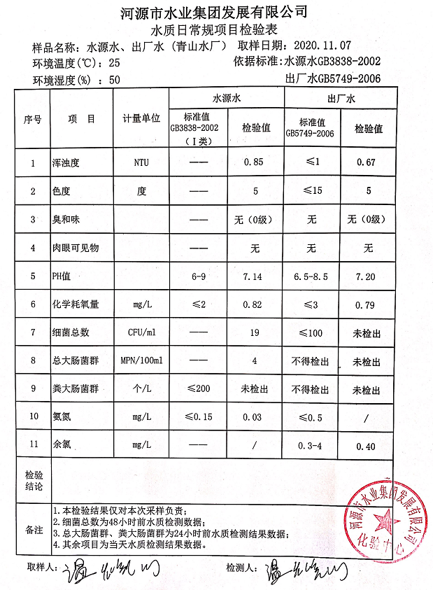 2020年11月7日水質(zhì)檢驗(yàn)報(bào)告