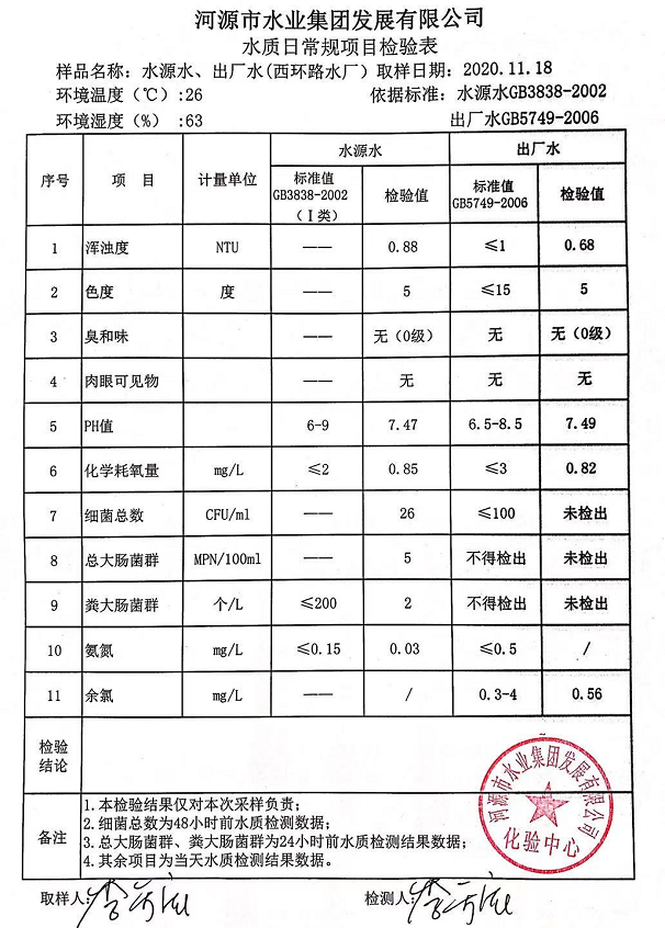 2020年11月18日水質(zhì)檢驗(yàn)報(bào)告