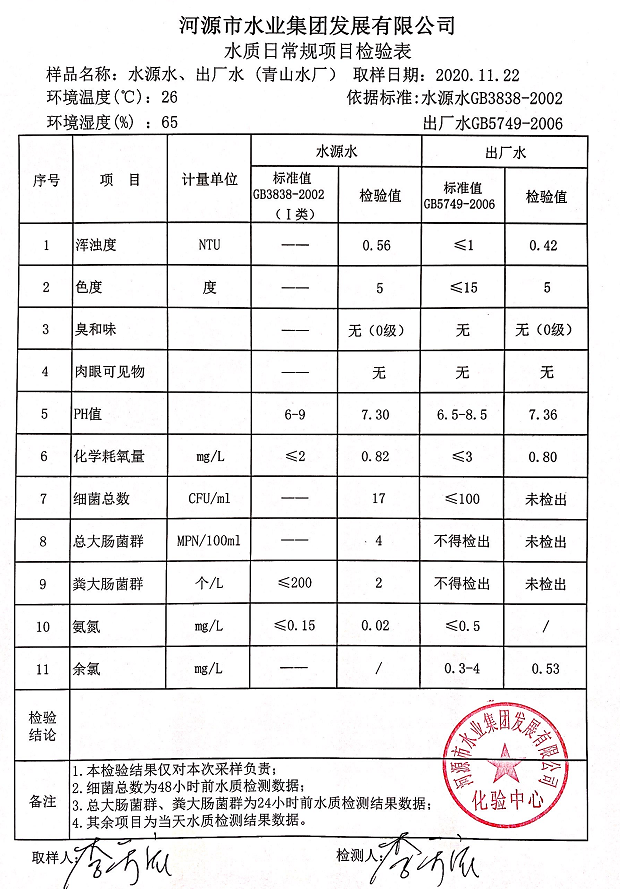 2020年11月22日水質(zhì)檢驗報告