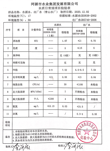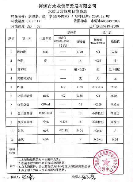 2020年12月2日水質(zhì)檢驗(yàn)報(bào)告