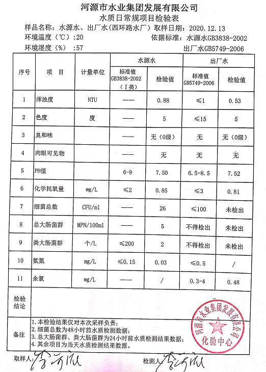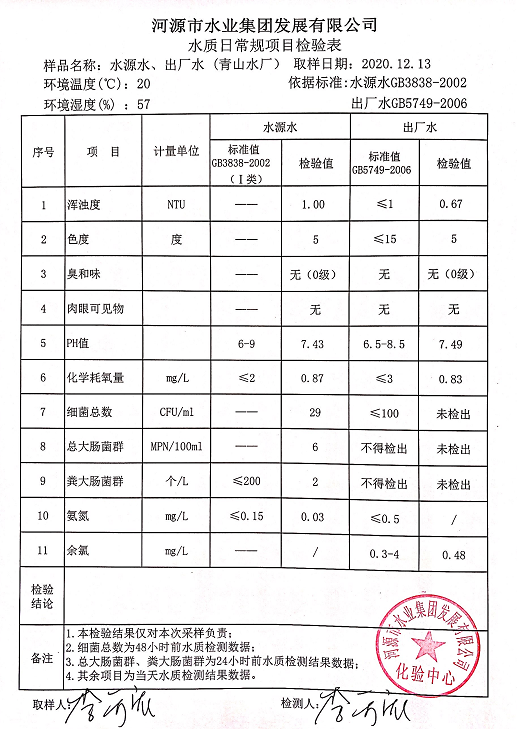 2020年12月13日水質(zhì)檢驗(yàn)報(bào)告
