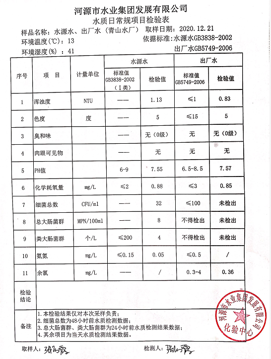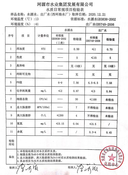 2020年12月21日水質(zhì)檢驗(yàn)報(bào)告