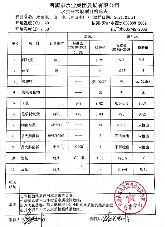 2021年1月21日水質(zhì)檢驗(yàn)報(bào)告