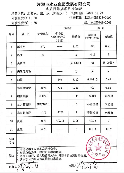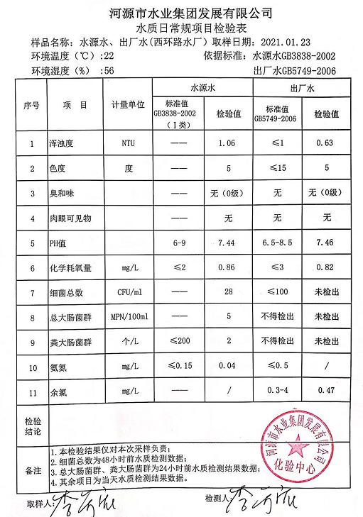 2021年1月23日水質(zhì)檢驗(yàn)報(bào)告