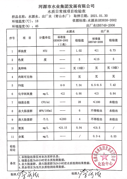 2021年1月30日水質檢驗報告