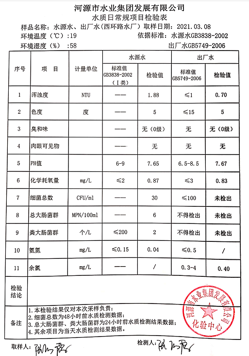 2021年3月8日水質(zhì)檢驗(yàn)報(bào)告