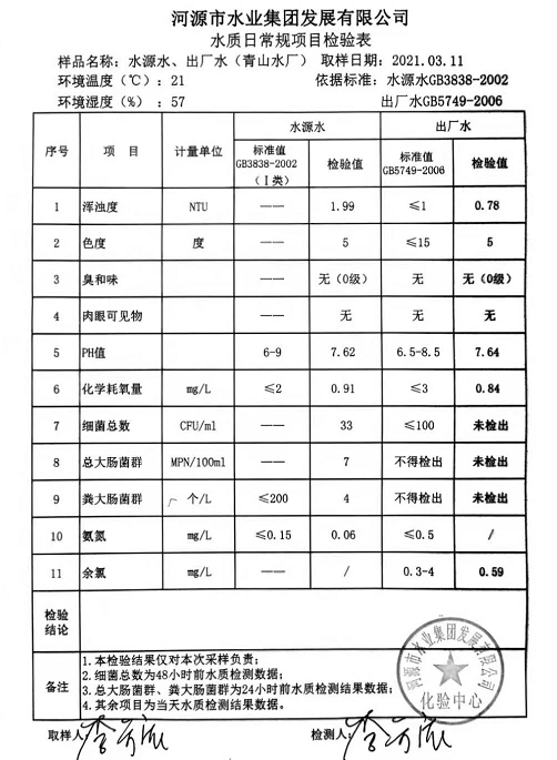 2021年3月11日水質(zhì)檢驗(yàn)報(bào)告