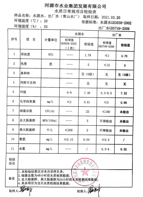 2021年3月20日水質(zhì)檢驗(yàn)報(bào)告