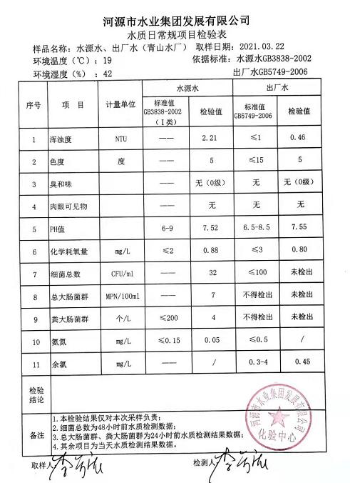 2021年3月22日水質(zhì)檢驗(yàn)報(bào)告