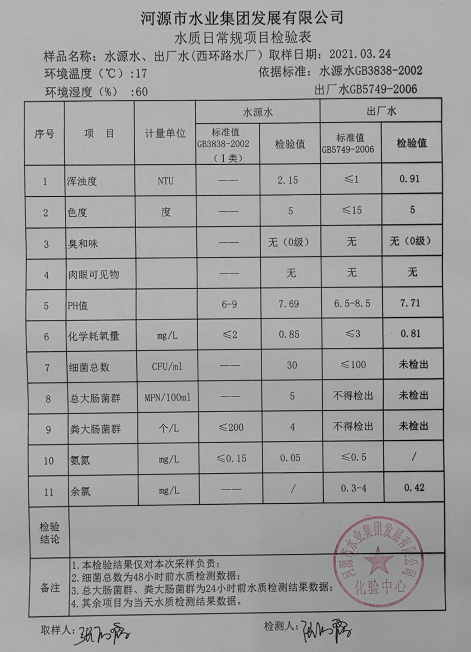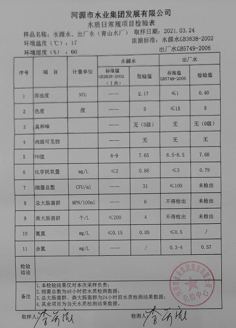 2021年3月24日水質(zhì)檢驗報告