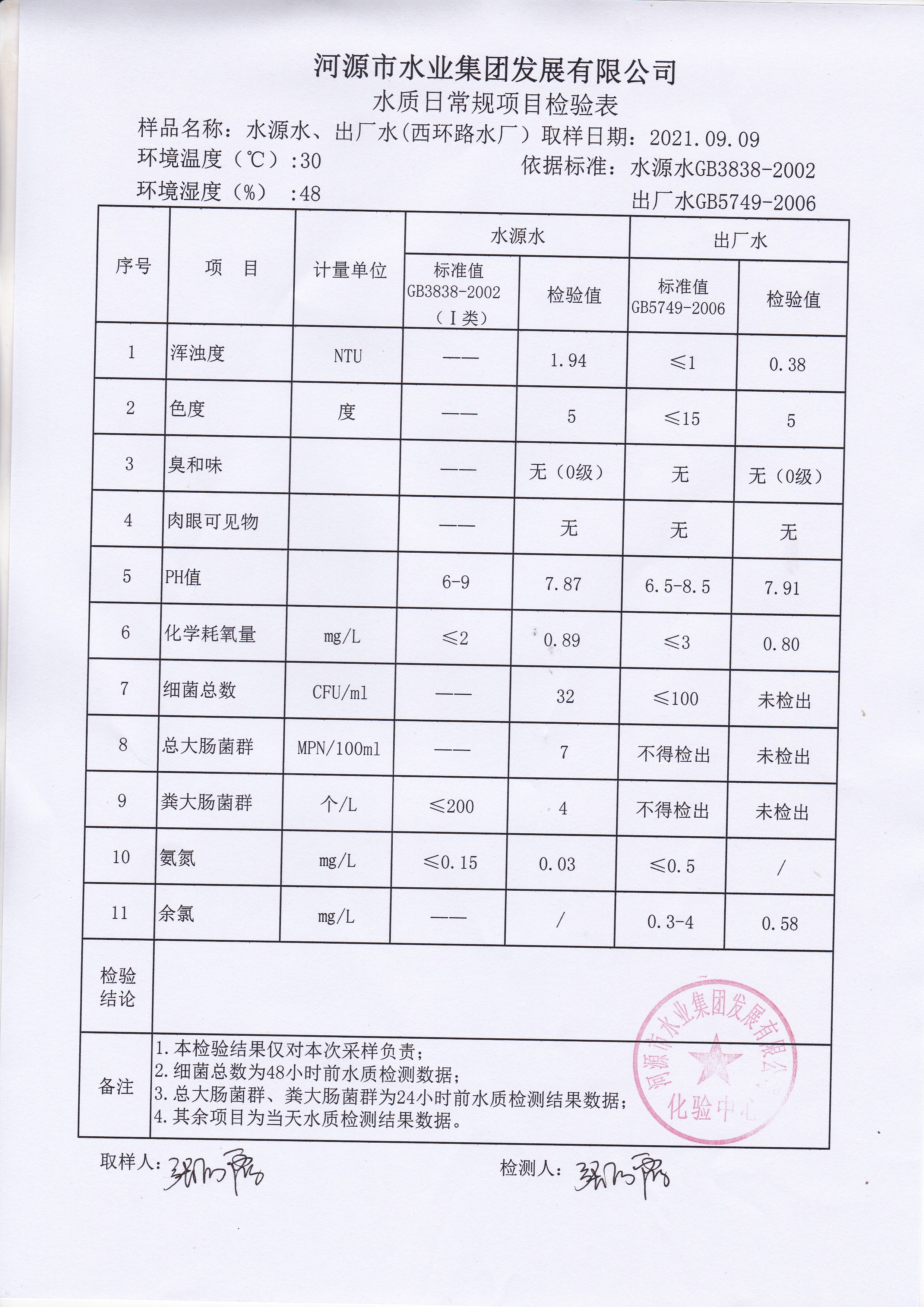 2021年9月9日水質(zhì)檢驗(yàn)報(bào)告 ??