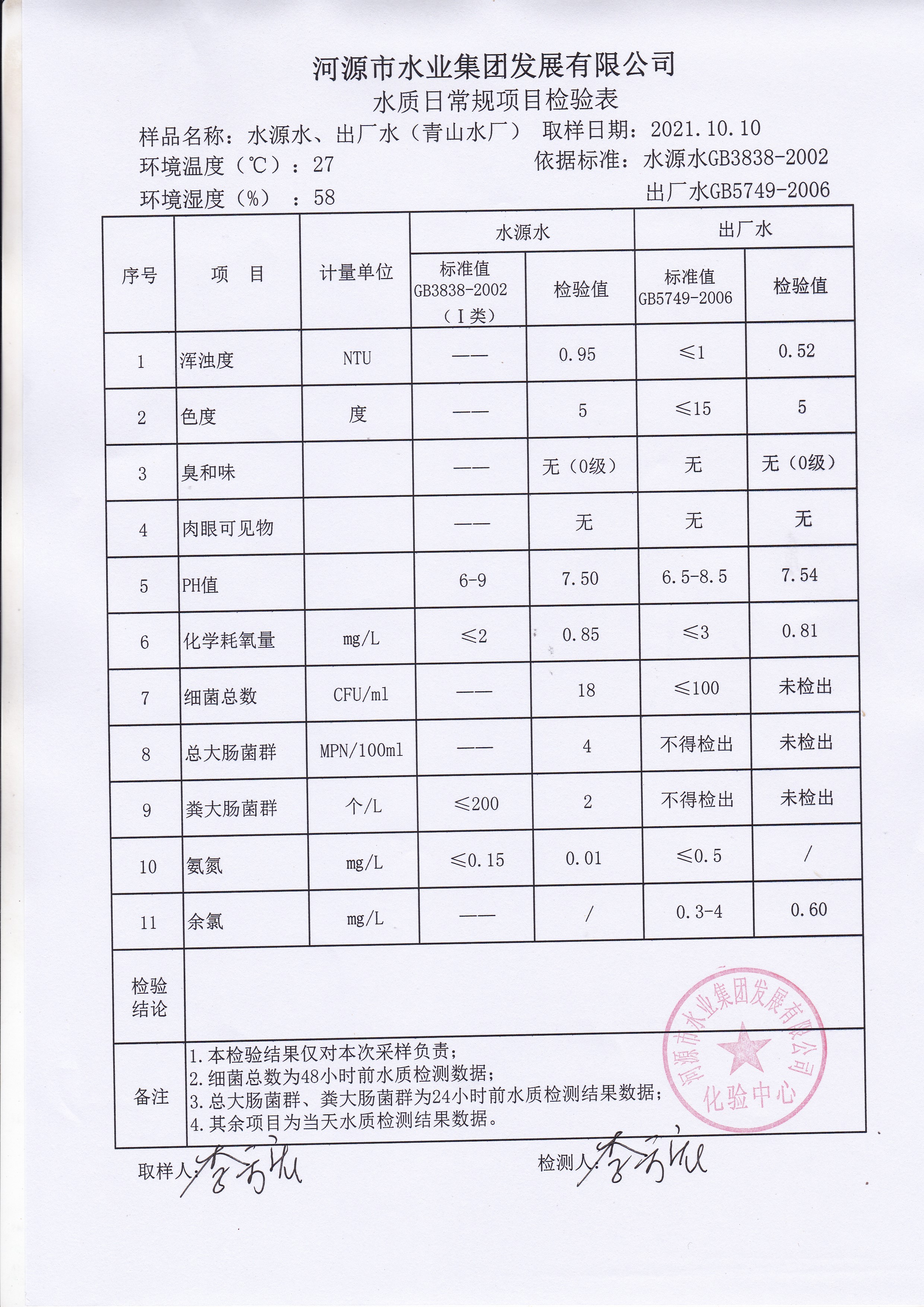 2021年10月10日水質(zhì)檢驗(yàn)報(bào)告