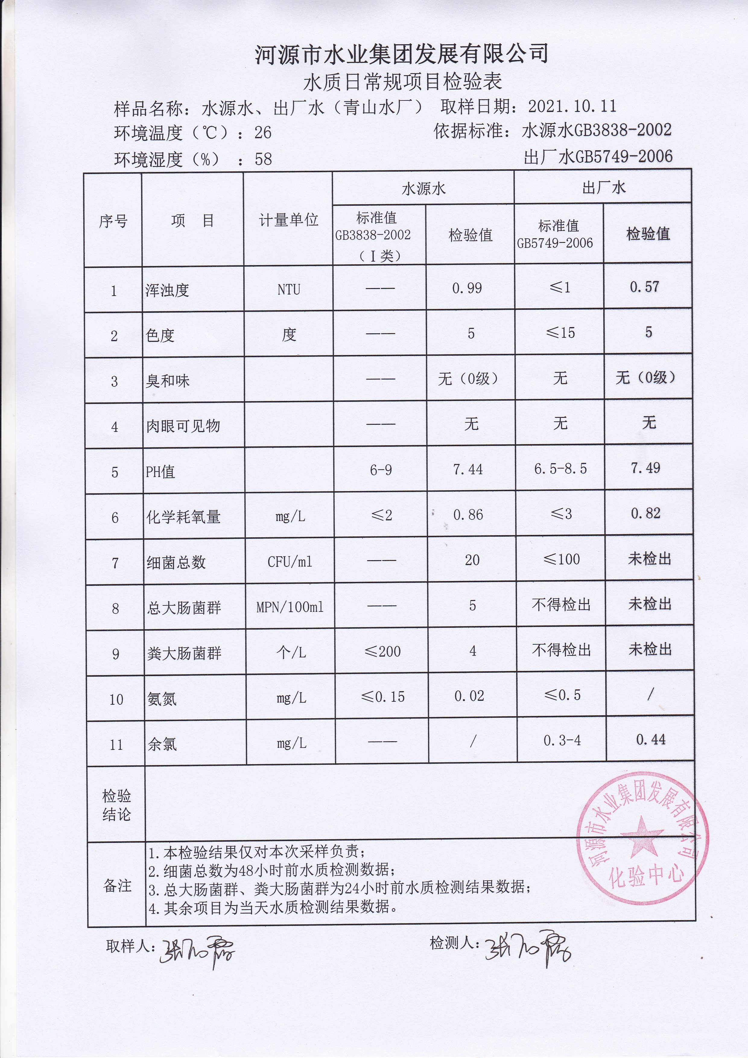 2021年10月11日水質(zhì)檢驗(yàn)報(bào)告