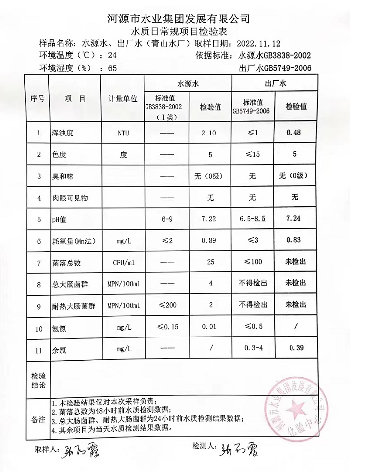 2022年11月12日水質檢驗報告