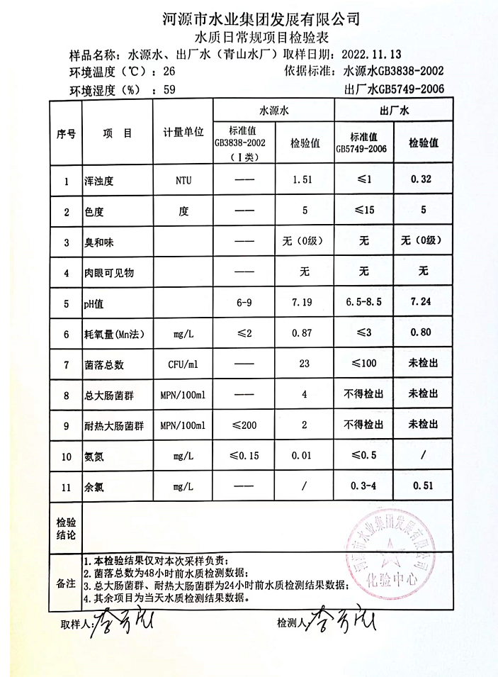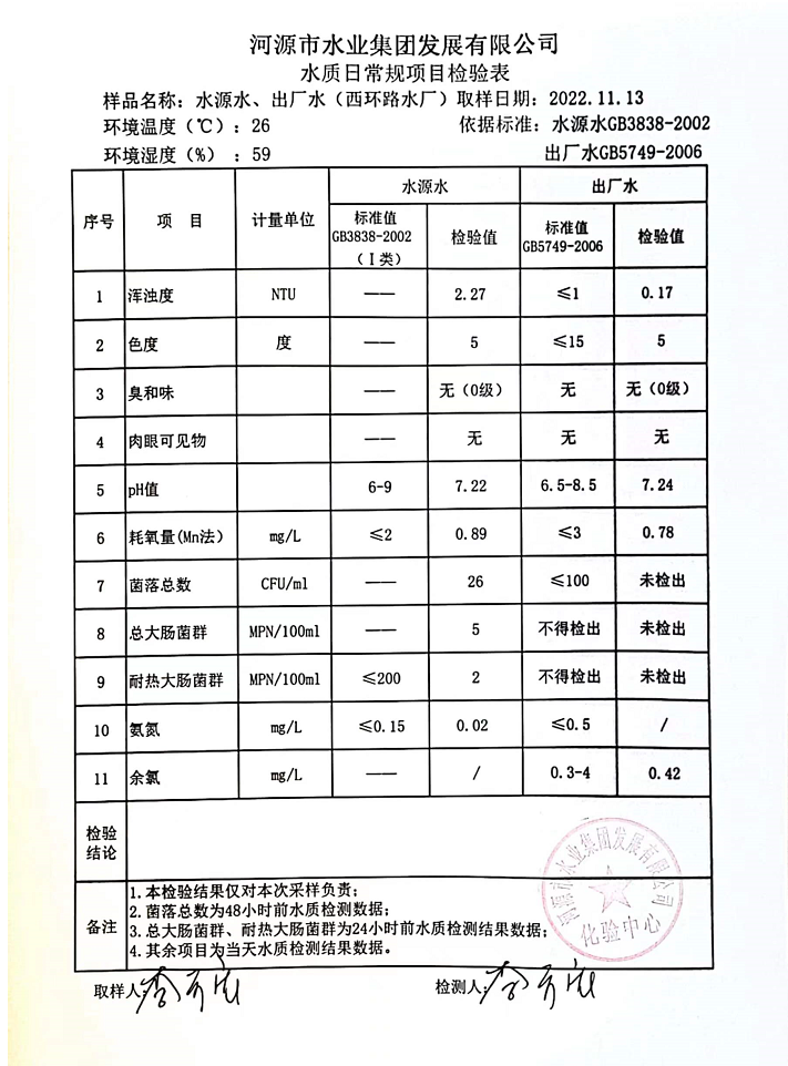 2022年11月13日水質(zhì)檢驗(yàn)報(bào)告