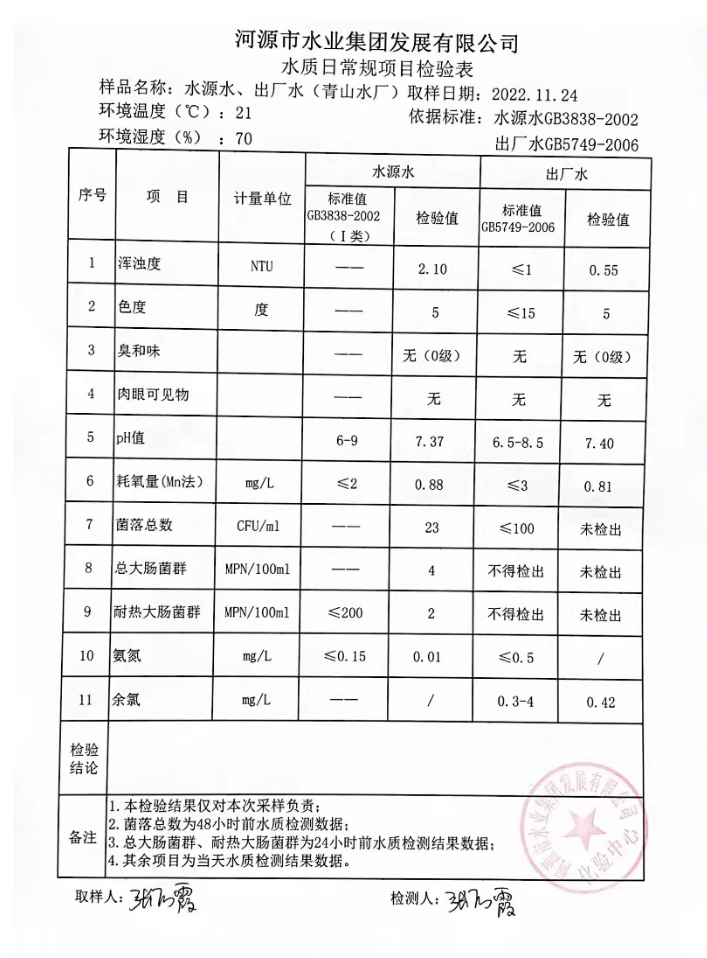 2022年11月24日水質(zhì)檢驗(yàn)報告