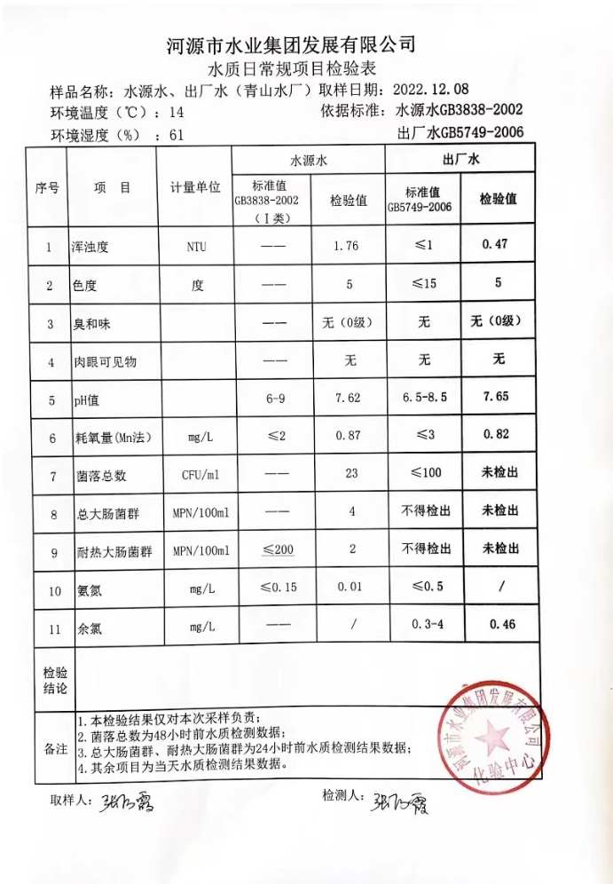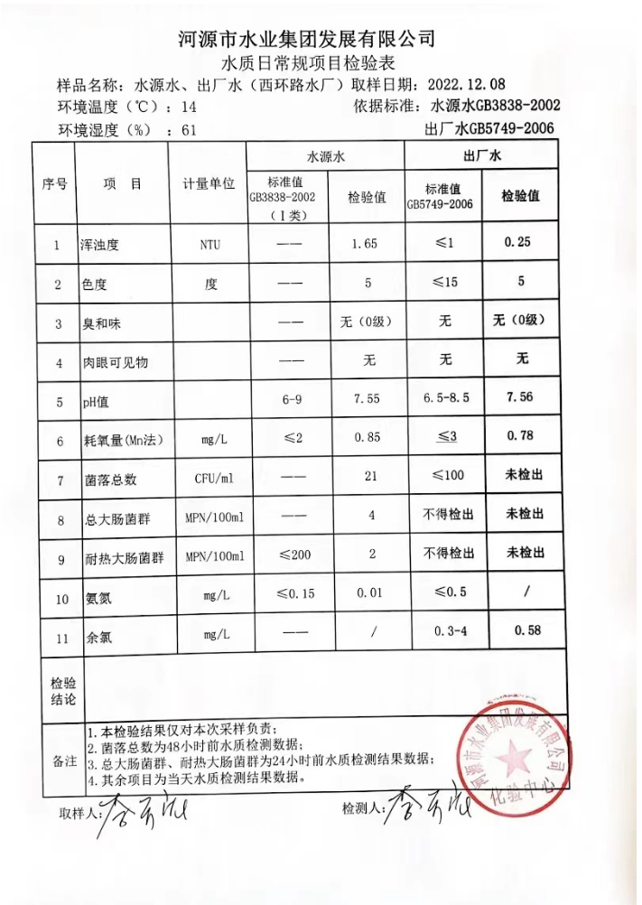 2022年12月8日水質(zhì)檢驗(yàn)報(bào)告