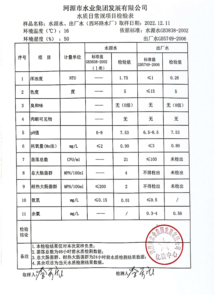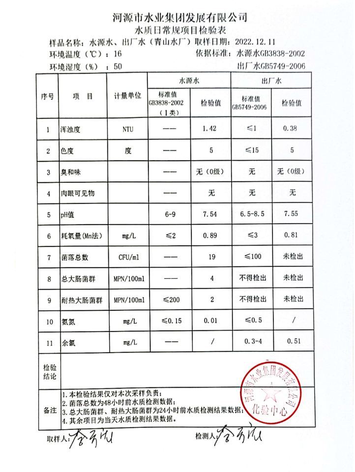 2022年12月11日水質檢驗報告
