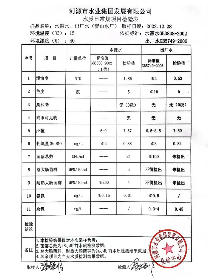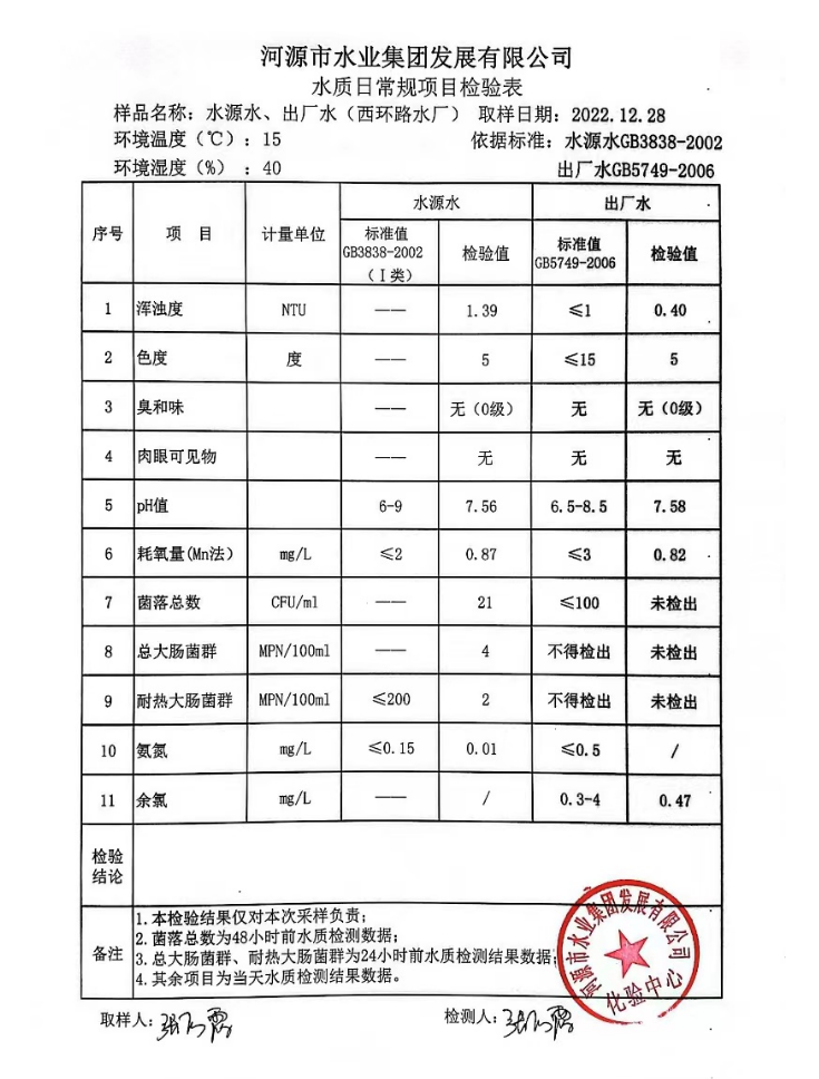 2022年12月28日水質(zhì)檢驗(yàn)報(bào)告