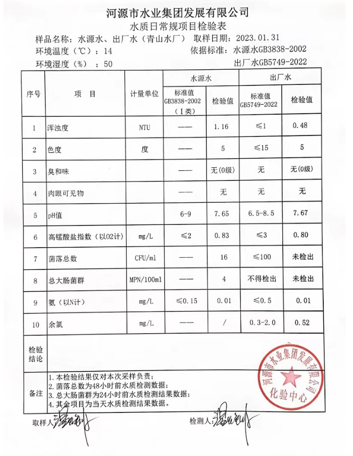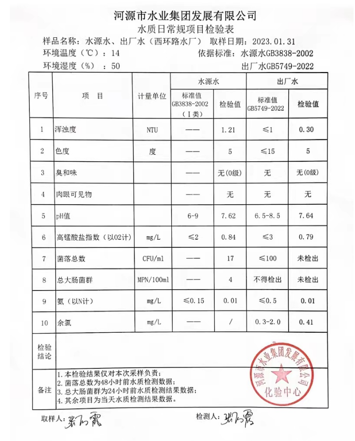 2023年1月31日水質(zhì)檢驗(yàn)報(bào)告