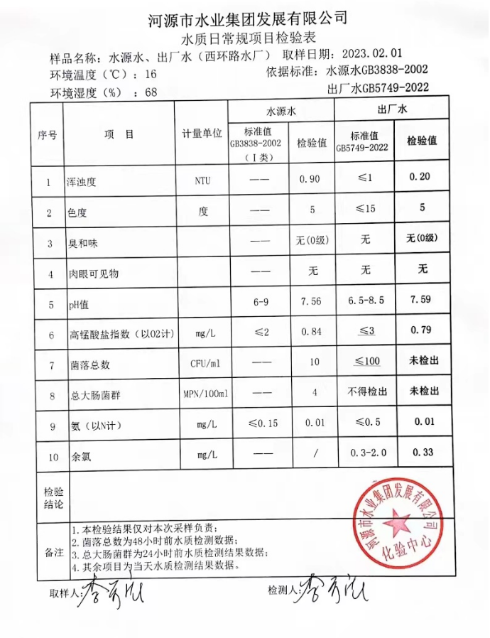 2023年2月1日水質(zhì)檢驗報告