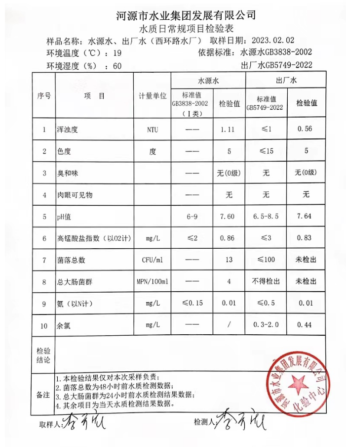 2023年2月2日水質(zhì)檢驗(yàn)報(bào)告