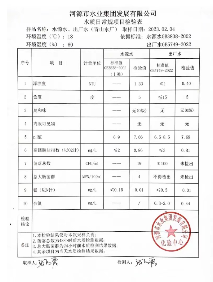 2023年2月4日水質(zhì)檢驗(yàn)報告