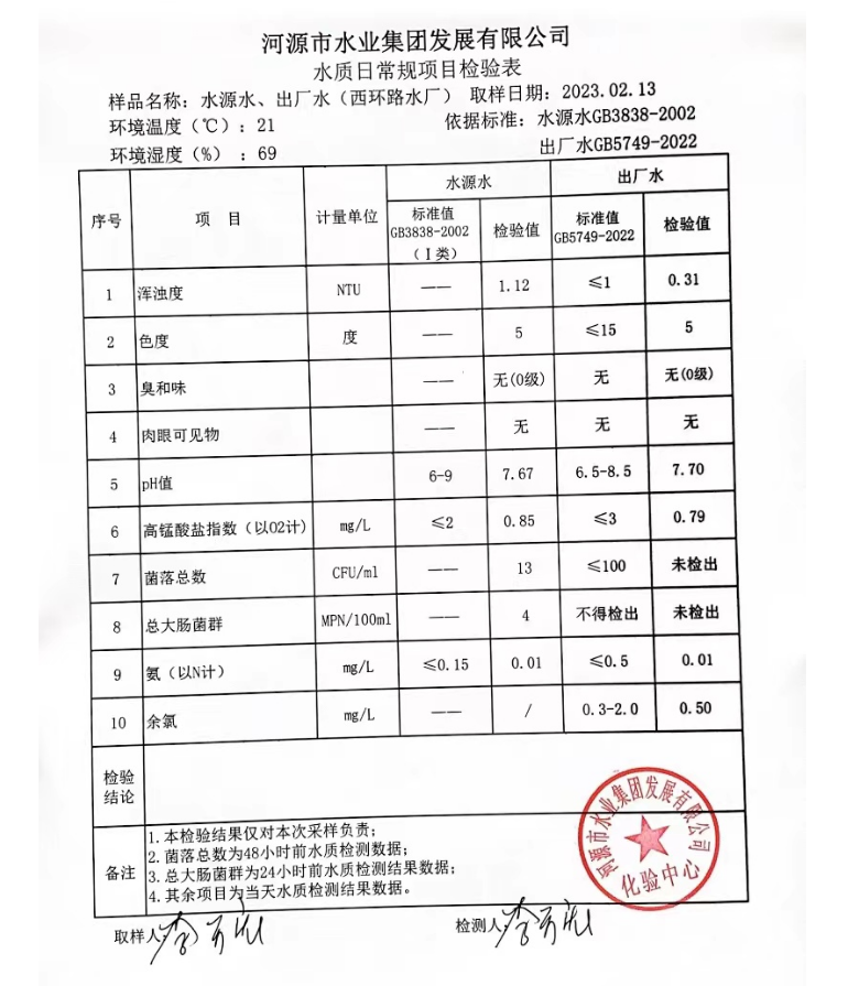 2023年2月13日水質(zhì)檢驗(yàn)報告