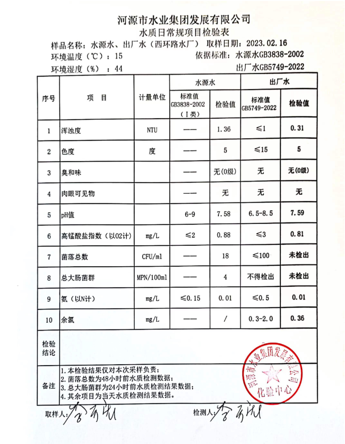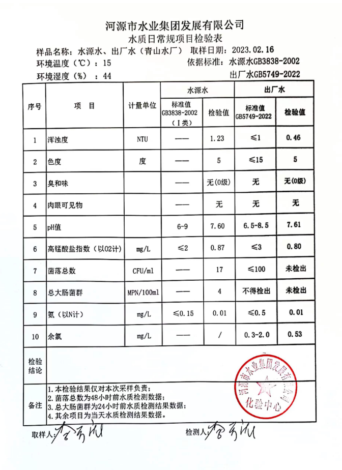 2023年2月16日水質(zhì)檢驗(yàn)報(bào)告