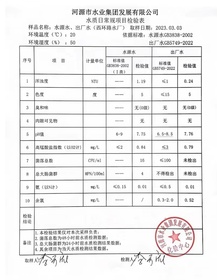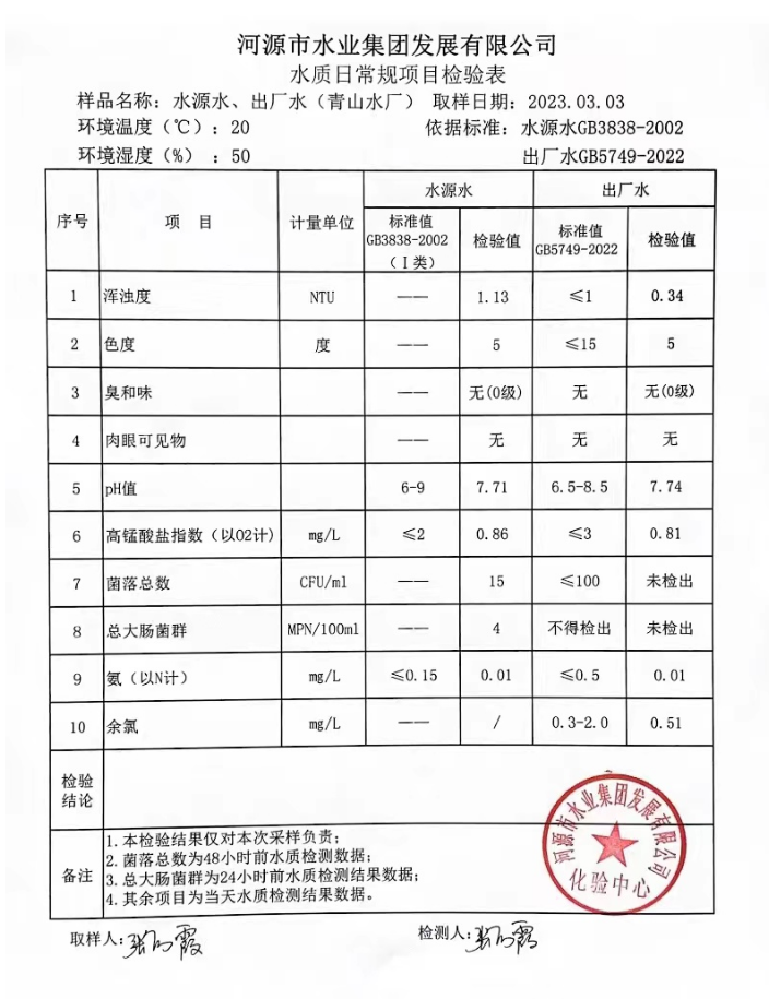 2023年3月3日水質(zhì)檢驗(yàn)報(bào)告