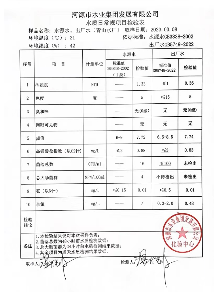 2023年3月8日水質(zhì)檢驗報告