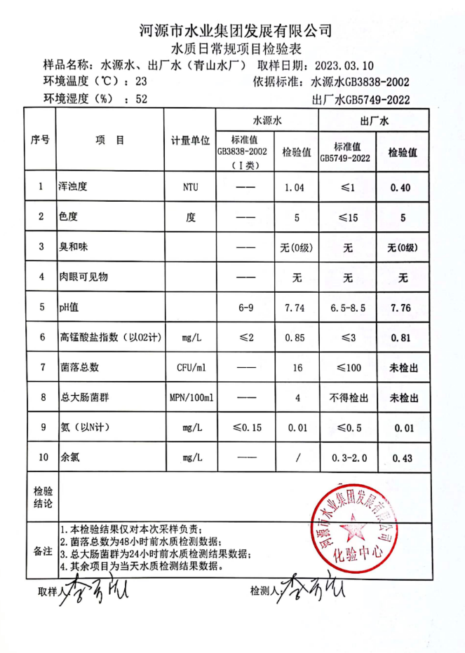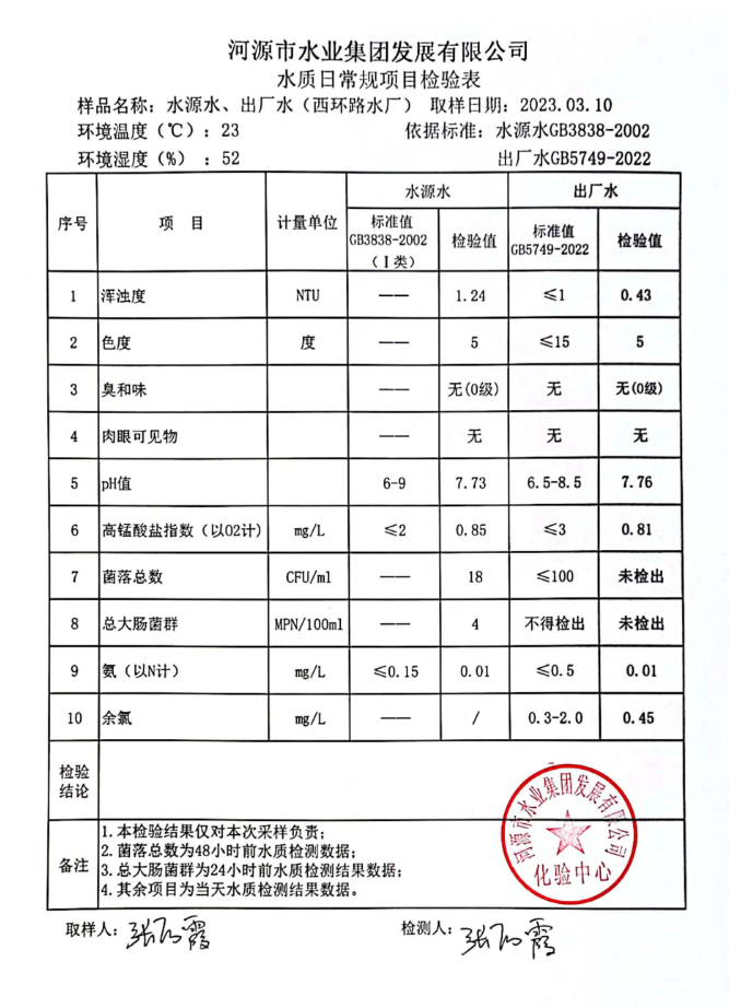 2023年3月10日水質(zhì)檢驗(yàn)報(bào)告