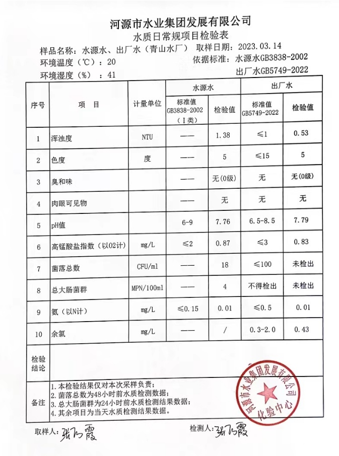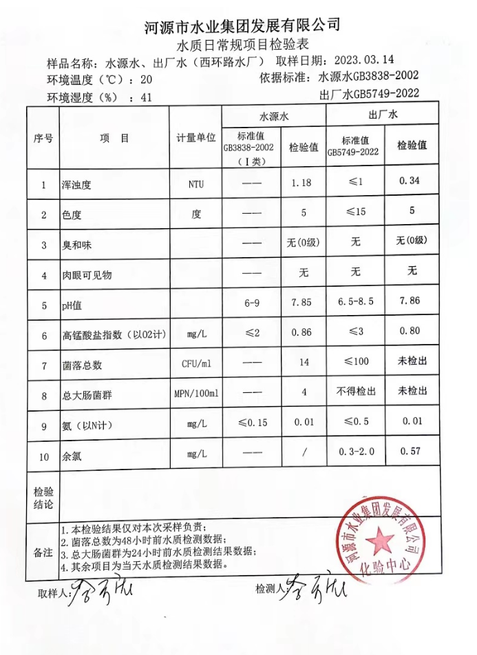 2023年3月14日水質(zhì)檢驗(yàn)報(bào)告