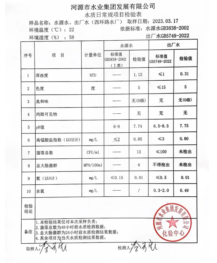 2023年3月17日水質(zhì)檢驗(yàn)報(bào)告