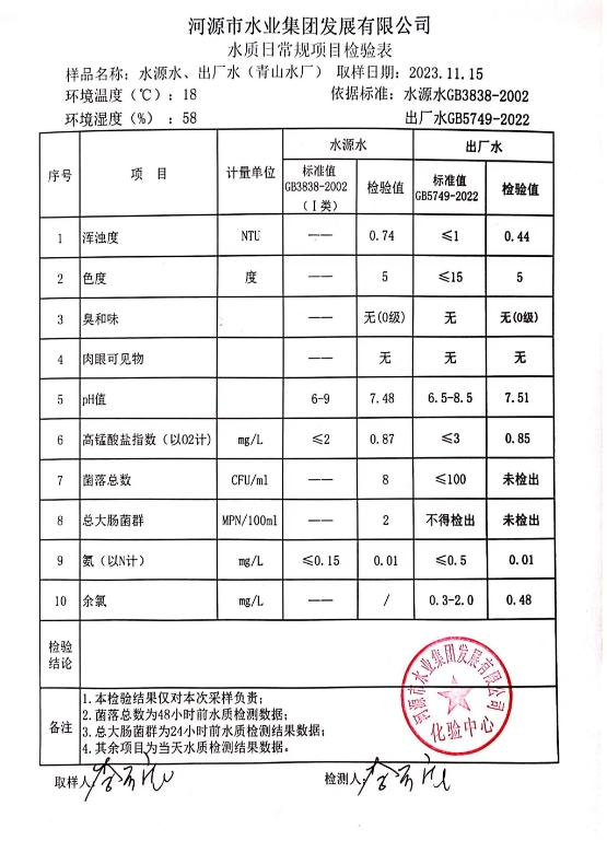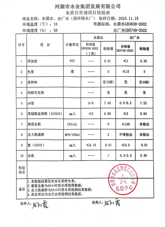 2023年11月15日水質(zhì)檢驗(yàn)報(bào)告 ???