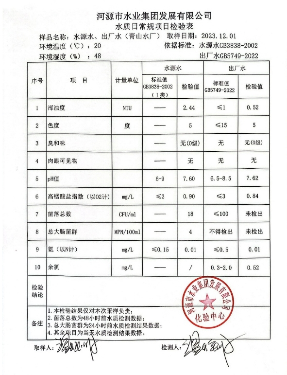 2023年12月1日水質(zhì)檢驗(yàn)報(bào)告 ???