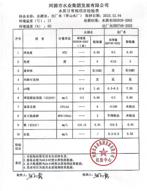 2023年12月4日水質(zhì)檢驗(yàn)報(bào)告 ???