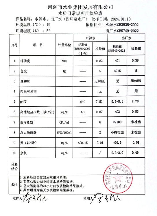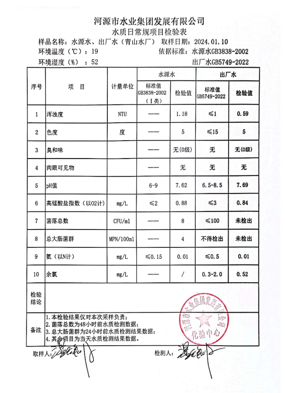 2024年1月10日水質(zhì)檢驗報告 ???