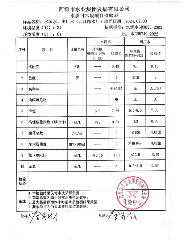 2024年2月3日水質(zhì)檢驗(yàn)報(bào)告 ???