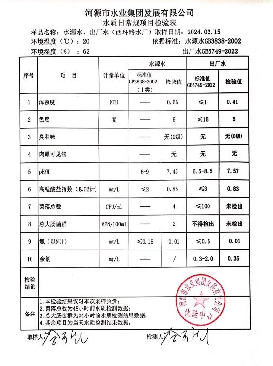 2024年2月15日水質(zhì)檢驗報告 ???