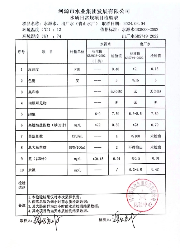 2024年3月4日水質(zhì)檢驗(yàn)報(bào)告 ???